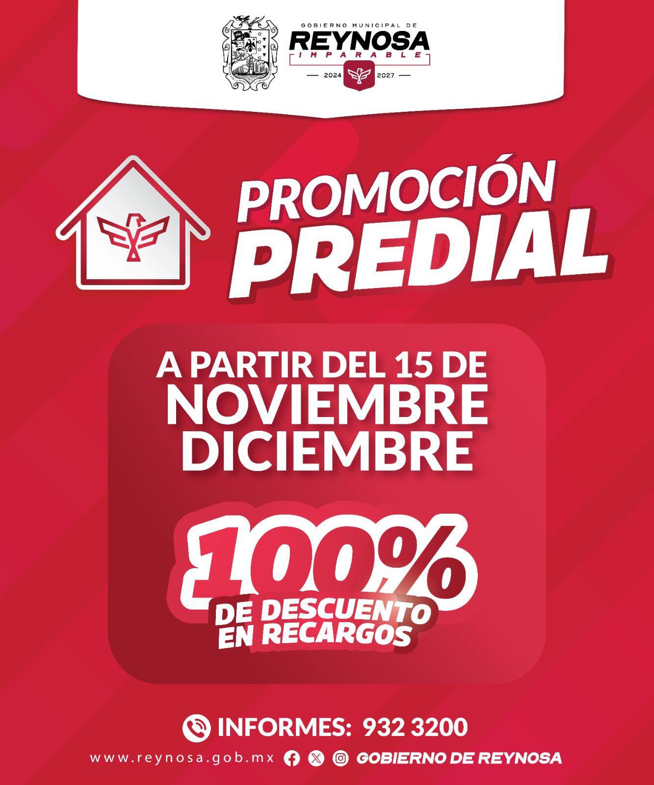 POR: VIRGILIO FLORES CHAPA El Gobierno Municipal de Reynosa, que preside el Alcalde Carlos Peña Ortiz, ofrece 100% de descuento…