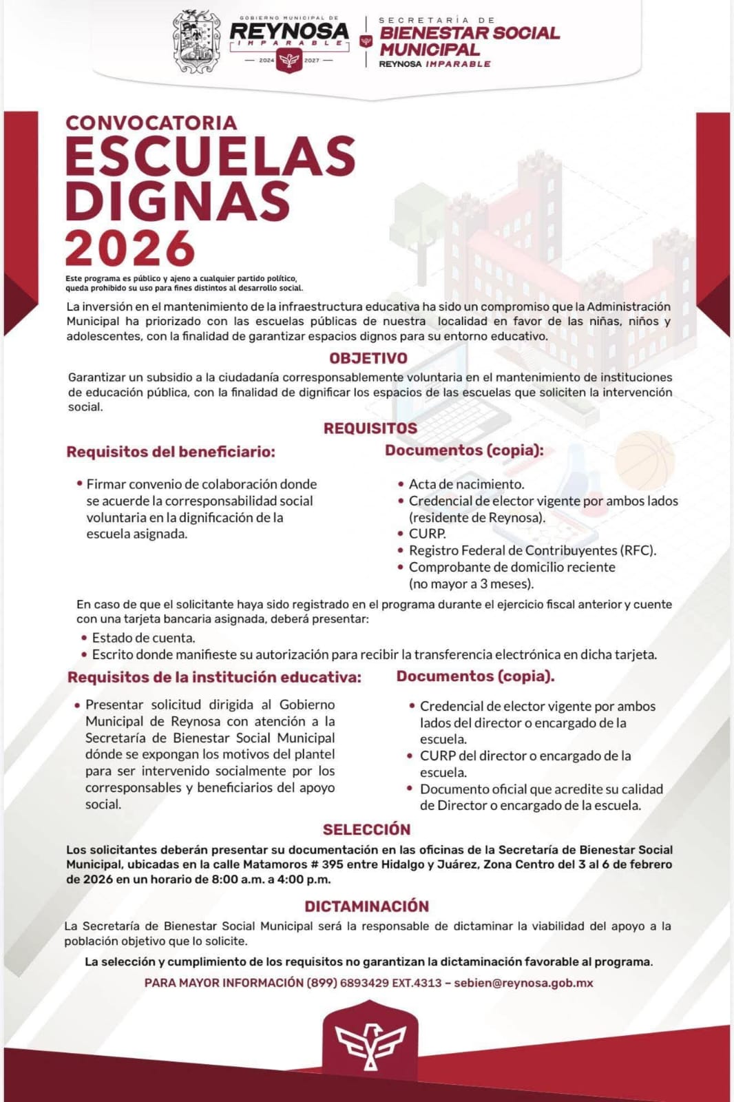 POR: VIRGILIO FLORES CHAPA El Gobierno de Reynosa, que preside el Alcalde Carlos Peña Ortiz, invita a la comunidad a…