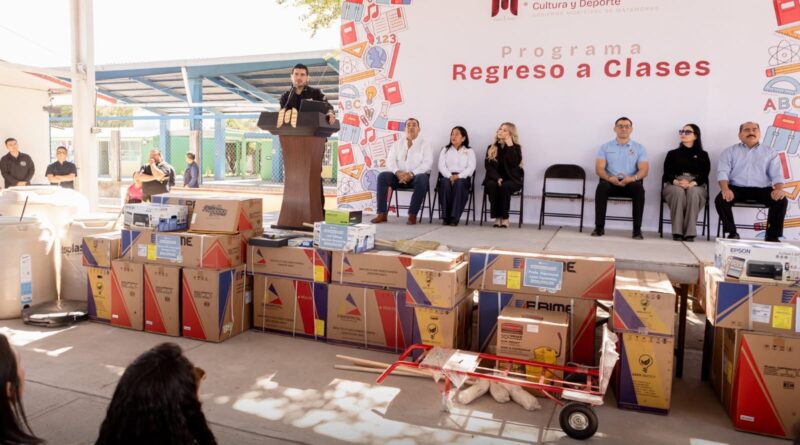Matamoros, Tamaulipas. — El presidente municipal, Beto Granados, encabezó la segunda entrega de apoyos como parte del programa “Regreso a Clases”, beneficiando a 40 planteles educativos de distintos niveles en el municipio. En esta ocasión, las escuelas recibieron aires acondicionados, material deportivo, pintura e insumos destinados a mejorar la infraestructura y el entorno de aprendizaje de niñas, niños y jóvenes matamorenses.