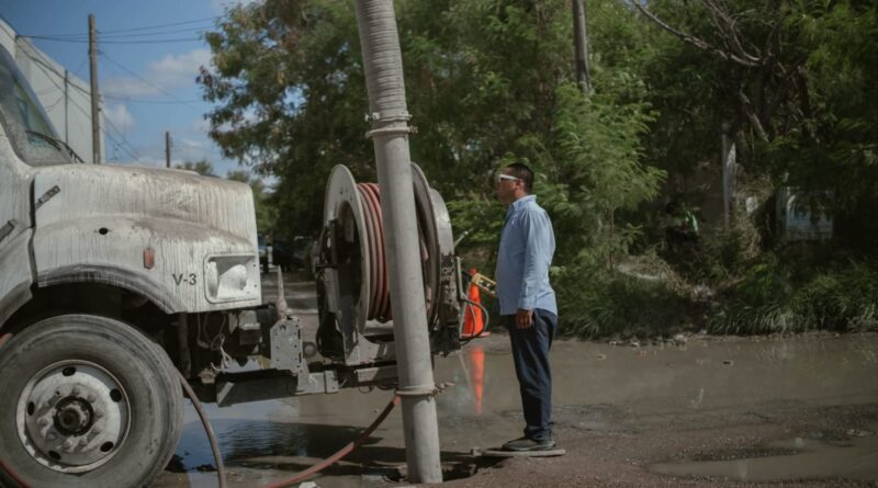 H. Matamoros, Tamaulipas.- El Gobierno de Matamoros, que encabeza el alcalde Beto Granados, continúa con las acciones de limpieza y desazolve en las líneas de drenaje sanitario, con el objetivo de mejorar el funcionamiento del sistema y evitar obstrucciones.