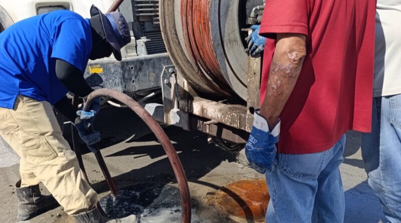 Por instrucciones del Alcalde, Carlos Peña Ortiz, la Comisión Municipal de Agua Potable y Alcantarillado de Reynosa llevó a cabo maniobras de sondeo en la línea general de drenaje sanitario sobre calle Don Elías, esquina con Blanca, en dirección a General Rodríguez, en el fraccionamiento Reynosa, con el objetivo de mantener en óptimas condiciones el sistema sanitario del sector.