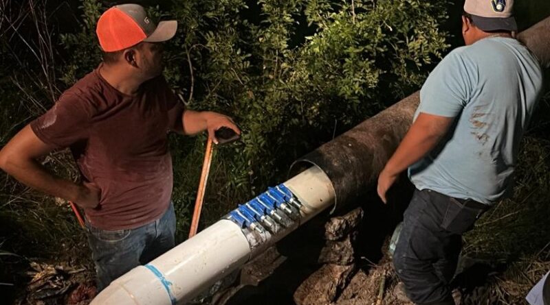 En atención a los reportes ciudadanos, personal del turno vespertino realizó la instalación de codos en el cruce de la colonia Delicias hacia la colonia Azteca, con el objetivo de reforzar la red de distribución y mejorar la presión del servicio en la zona.